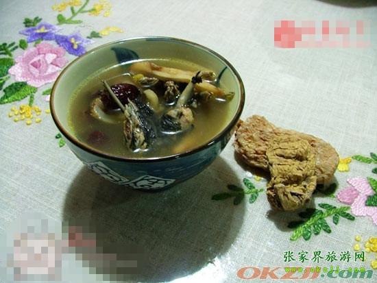 烏雞天麻湯極具營養(yǎng)價值,是民間滋補(bǔ)“秘方”。“張家界”八大公山一帶的天麻,色金黃,透明發(fā)亮,是天麻中的上品,可治療頭暈?zāi)垦?、中風(fēng)偏癱,又滋補(bǔ),又治病,兩全其美。 |