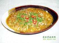 “張家界”的特色菜之一合渣,是土家人極喜歡的菜肴。以黃豆粉摻青菜溫火煮,味美易咽,營養(yǎng)豐富。 |