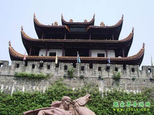 作為楚漢名城,長沙2000多年前就有寬厚的夯土城垣。明初悉改石基磚砌,外繞護(hù)城河。辛亥革命后拆城墻修環(huán)城公路,僅地勢最高的天心閣一段作為勝跡保留。時(shí)人有聯(lián)曰:“閣上九霄迎日月,城留一角看江山”。這段古城墻現(xiàn)長387.8米,高13.4米,頂面寬6.1米。分內(nèi)外兩城,外城又筑南北兩月城,內(nèi)有藏兵洞、炮洞等,并留清代鐵炮4門。城墻上尚存的斑斑彈痕,向人們訴說著城墻下的一段悲壯歲月:1852年9月10日,太平軍抵長沙南門外。西王蕭朝貴身先士卒,躍馬揮劍,在前沿指揮攻城,不幸于9月12日中炮犧牲。以此為背景,《太平軍魂》群像雕塑1993年10月在天心閣古城墻下揭幕,向世界展示了一曲農(nóng)民革命戰(zhàn)爭的悲壯頌歌。