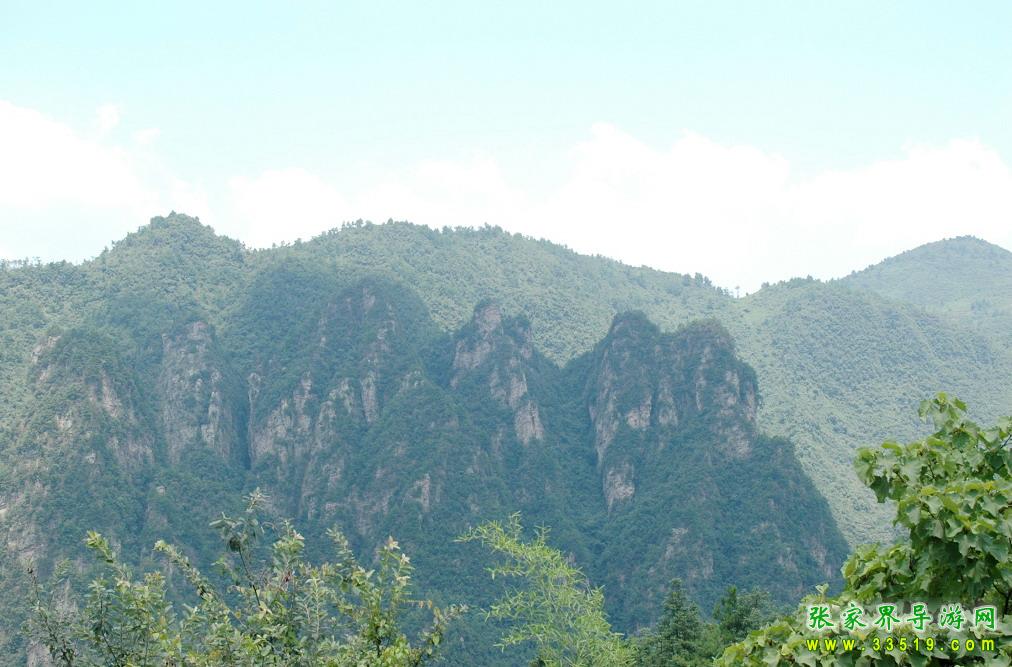 再向前,兩岸的山峰,更像一座座人型,或者某一物體,這一帶有“金猴望月”,“群仙赴會”,“罐尖山”,“神仙洞”。還有,高聳入云的石峰,上面頂著一塊平面巨石的“棋盤巖”;叢林中突兀而出的“三尖巖”;萬丈懸崖上長出兩個大孔的“牛鼻峰”;懸崖上兩道瀑布從天而降的“二洞泉”;還有群峰護衛(wèi)的“人形山峰”;座北朝南,頭頂披肩,雙手合十的“觀音山”。老人會告訴你:“這條溪,十幾里路,幾十個景點,上百個傳說”