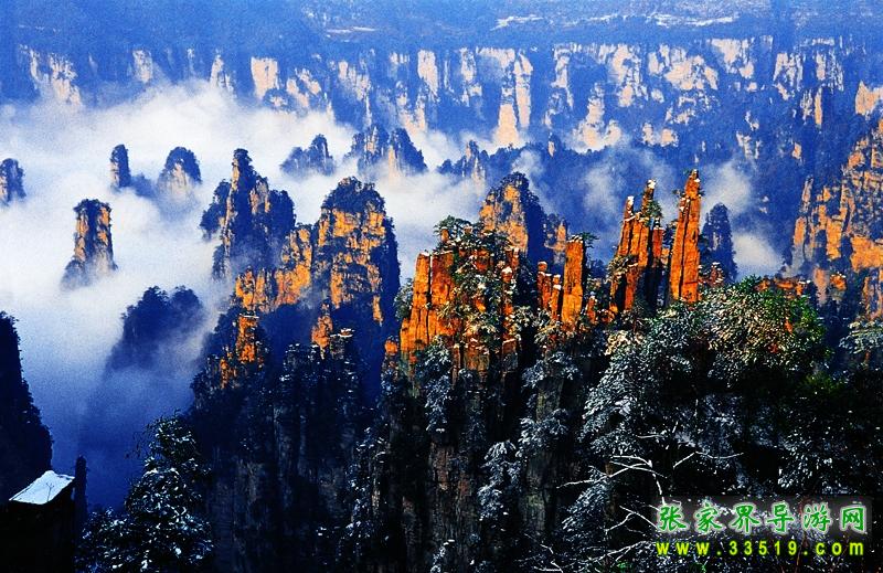 索溪峪風(fēng)景區(qū)索溪峪,西南緊連張家界,西北毗鄰天子山,面積一百四十七平方公里,有景點(diǎn)二百多處。索溪峪山、水、洞自成一體 ,奇峰起伏錯(cuò)成趣;水,泉清瀑美,千姿百態(tài);洞,幽深神秘,其妙無比。那恍若仙境的地下宮殿黃龍洞,天然浮雕羅列、充滿詩情畫意的十里畫廊,碧波蕩漾的寶峰湖,充滿傳奇色彩的百仗峽及太虛幻境般的西海云霧,一剛一柔、形態(tài)風(fēng)格迥異的鴛鴦瀑.... 無不令人流連忘返。遠(yuǎn)在明代中葉,就有人在巖壁題詩贊曰: “高峽百丈洞云深,要識(shí)桃源此處尋。”
