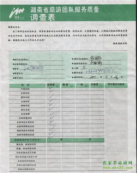 2011年6月26日劉先生一行7人旅游質(zhì)量反饋