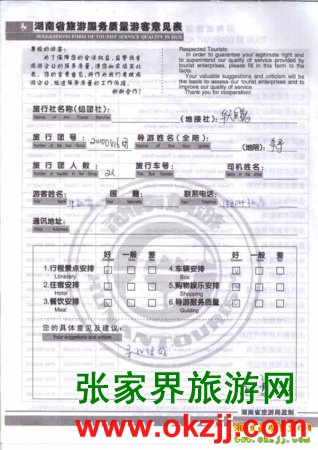 2010年3月18號中先生一行2位旅游質(zhì)量反饋