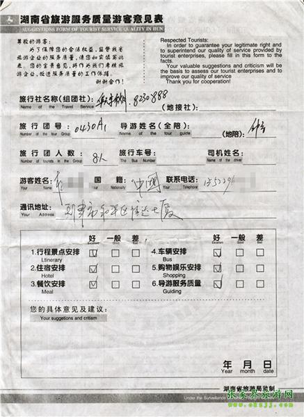 2011年5月3日楊先生一行8人旅游質量反饋