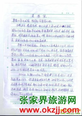 - 游客夏先生為表揚導游李姣姣寫來表揚信致我張家界... [14811]