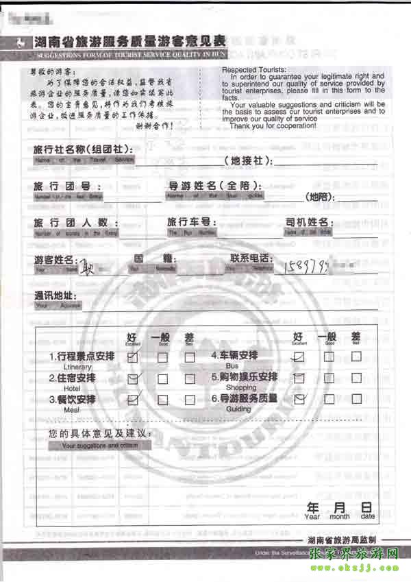2010年10月6日耿先生旅游質(zhì)量反饋