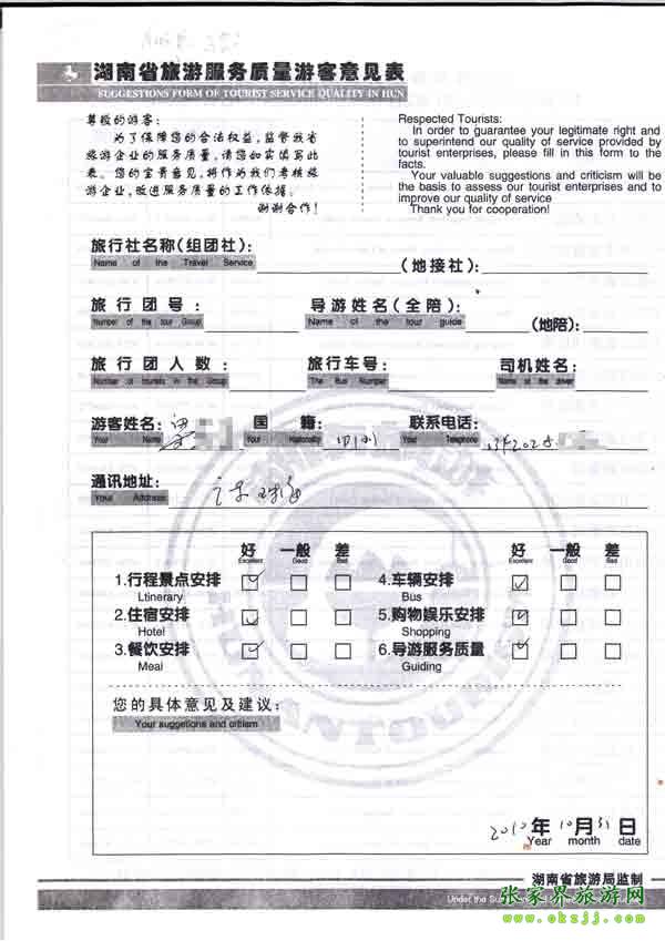 - 2011年10月26日張小姐一行18人旅游質(zhì)量反饋 [10482]