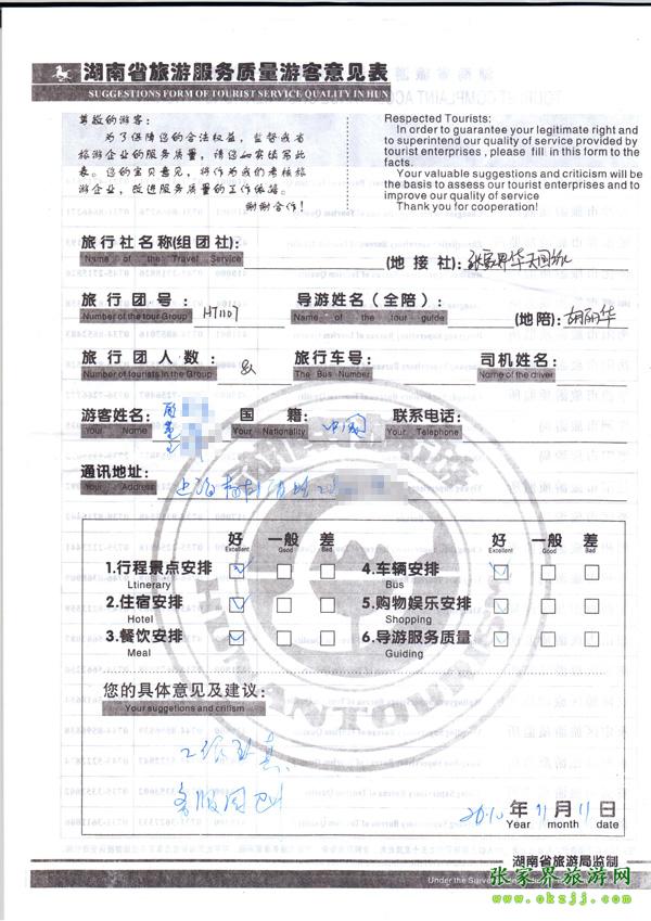 2010年11月11日顧先生旅游質(zhì)量反饋
