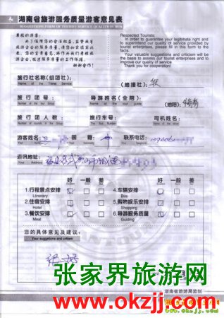 - 游客夏先生為表揚(yáng)導(dǎo)游李姣姣寫來表揚(yáng)信致我張家界... [14811]