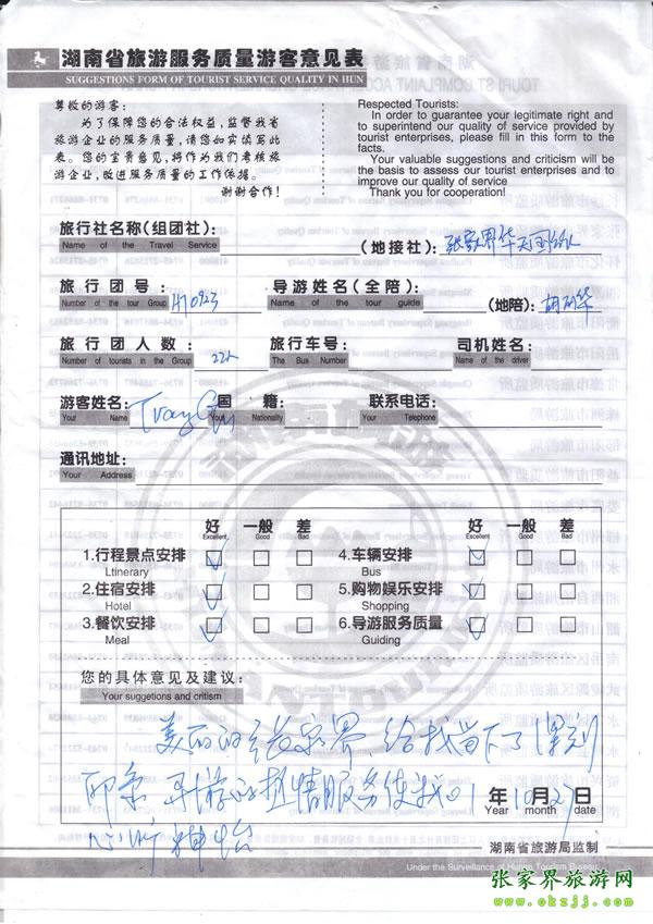 - 游客夏先生為表揚導(dǎo)游李姣姣寫來表揚信致我張家界... [14811]
