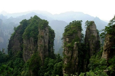 第二天:早上乘車(40分鐘)前往中國第一個(gè)國家級森林公園——張家界國家森林公園,游覽大氧吧廣場(每立方厘米空氣中含8-10萬個(gè)負(fù)氧離子),登海拔1200米、張家界最大的凌空觀景臺——黃石寨景區(qū)(可選擇乘索道單程48元/人.次、雙程96元/人.次或步行),千山萬壑盡收眼底,沿著山頂環(huán)寨游道行走,可欣賞到許多絕美的自然風(fēng)光,沿途有六奇閣、摘星臺、雙門迎賓、五指峰、霧海金龜、天然壁畫、黃石松、回音壁、九重壁等景點(diǎn); 下午漫步“中國最美麗的大峽谷”——金鞭溪,全長7.5公里,步行約2.5小時(shí)。沿途游覽金鞭巖、神鷹護(hù)鞭、劈山救母、醉羅漢、文星巖、紫草潭、千里相會、水繞四門、觀音送子、師徒取經(jīng)、長壽泉、蠟燭峰、雙龜探溪、秀才藏書等著名景點(diǎn);乘環(huán)保車下山至武陵源門票站,出景區(qū),入武陵源;