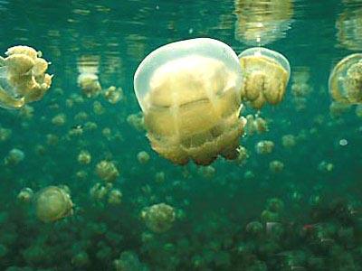 4.帕勞群島巖石島 水母湖 即便是潛水的“老手”也表示,在這里的體驗(yàn)是其潛水生涯中“最不可思議的經(jīng)歷”。湖中水母成群,但它們不會刺人,潛水者可以與水母一同暢游,或者捧起它們觀賞,完全不必?fù)?dān)心會受傷。