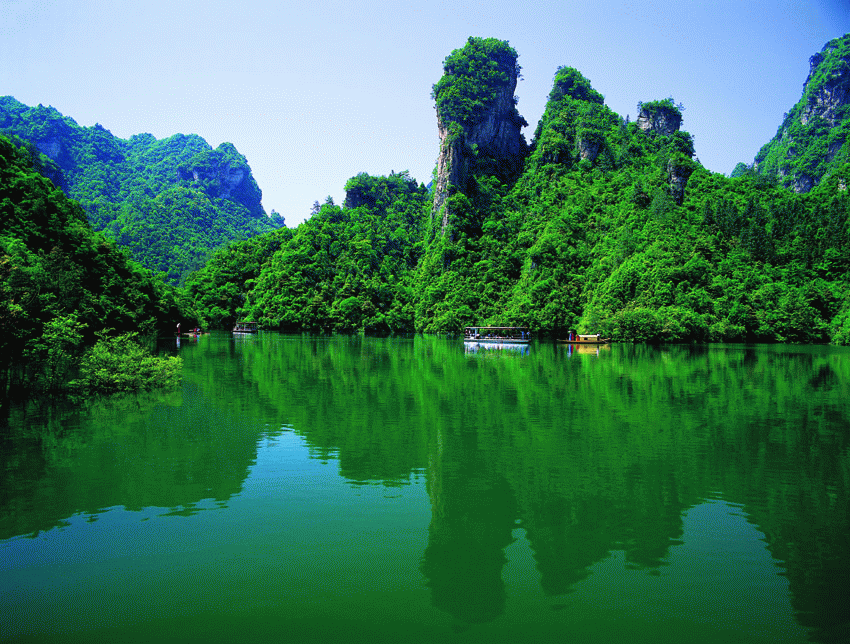 人間瑤池--寶峰湖,寶峰湖風(fēng)景區(qū)集山水于一體,融民俗風(fēng)情于一身,尤以奇秀的高峽平湖絕景、“飛流直下三千尺”的寶峰飛瀑、神秘的深山古寺聞名,我們將前往觀賞寶峰飛瀑、仙女照鏡、石門迎賓、孔雀開屏、金蟾含月、神龜出水等栩栩如生的景點(diǎn),泛舟湖上,聽水上阿哥阿妹山歌傳情、碧水悠悠鷺鷥捕魚;寶峰湖武陵源風(fēng)景名勝中的精品景點(diǎn)。
