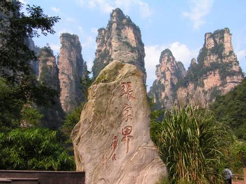 上午 乘車前往世界峰林奇觀--山風景區(qū)(可選擇乘索道單程52元/人.次下天子山),在天子山,則可俯視大千世界,您會生出“山上無山我獨尊”的無限豪情;天子山有四大奇觀:峰林、云海、日出、冬雪,一幅幅雄偉壯觀、奇特迷人的景象,相信會讓大家大飽眼福而流連忘返。我們將前往游覽天子閣、西海石林、御筆峰、仙女獻花、賀龍公園、石船出海、采藥老人、賀龍銅像等著名景點。