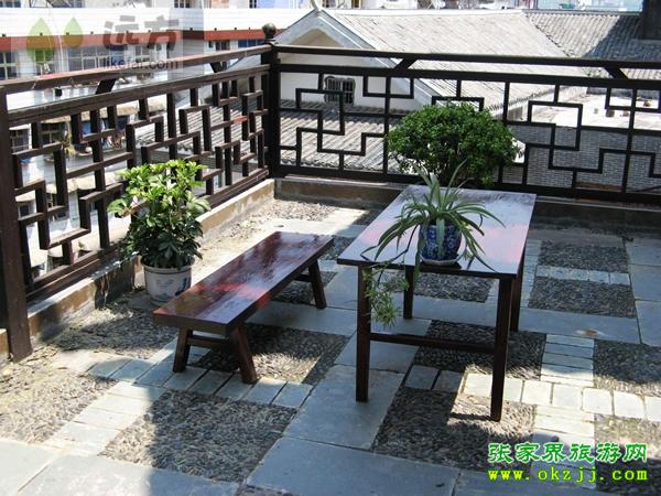 活動(dòng)區(qū)域有兩個(gè),一個(gè)是走廊活動(dòng)區(qū),適合吹風(fēng)、發(fā)呆,一個(gè)是屋頂陽臺(tái)活動(dòng)區(qū),適合日光浴,陽臺(tái)上的盆景和花卉會(huì)映襯著天門山景!